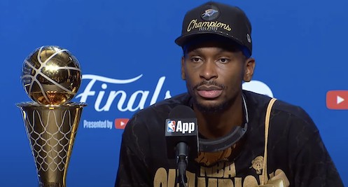 NBA总决赛,俄克拉荷马雷霆在主场以103-91击败印第安纳步行者,夺得2025年NBA总冠军。赛后,亚历山大出席了新闻发布会。